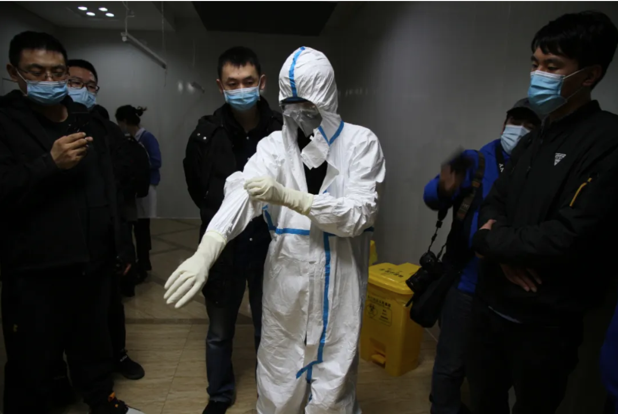 4月5日晚6时,由34名医务人员组成的牡丹江红旗医院第一批支援队伍抵达绥芬河市人民医院。医务人员到位后,第一时间了解了病区划分情况,熟悉接诊流程,还现场开展了详细的穿脱防护服培训。