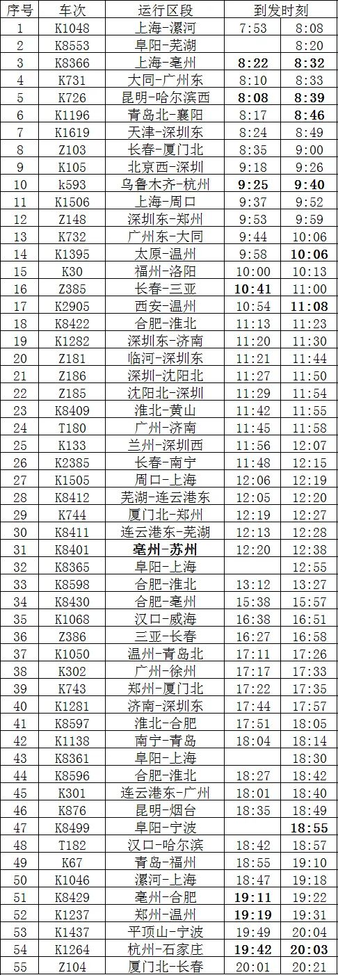 4月10日零时起,阜阳西站、阜阳站调图!(附最新列车时刻表)