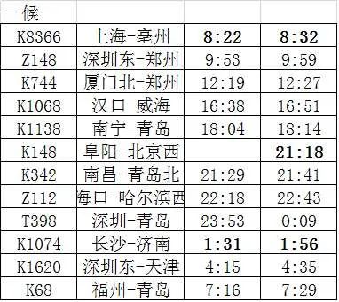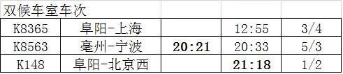 1.亳州南-合肥南G9291次列车,阜阳西站20:11到达,20:14开车;