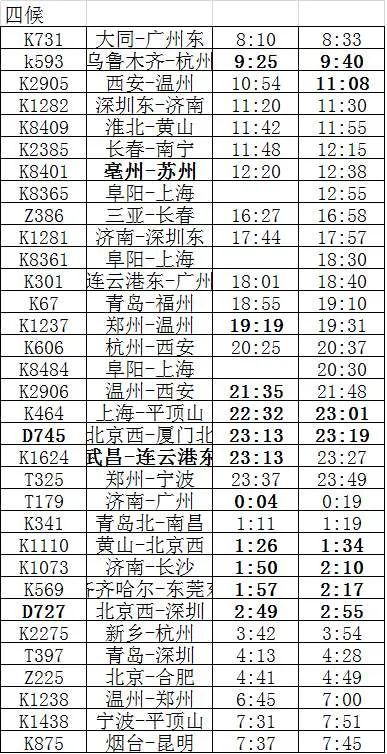 2.原黄山北-亳州南G7748次列车,区段调整为杭州东-亳州南,车次调整为G7756次列车;