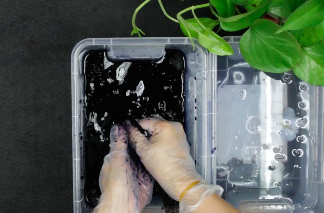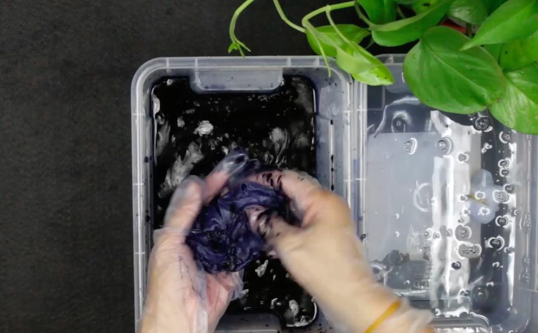 1)在锅中倒入能没过布料的水、煮沸。戴上手套,放入盐和染料。