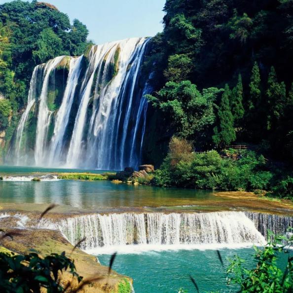 黄果树瀑布,作为喀斯特瀑布群的景观代表,有的不仅仅是“白水浩荡群山,势如江翻腾蛟龙”的壮阔,更有“万里晴空抛碧纱,飞雪喷珠耀彩虹”的浪漫。
