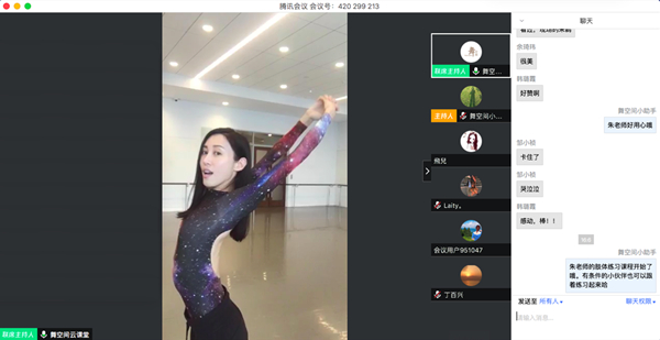朱洁静的舞蹈课在手势舞《听我说谢谢你》中拉开序幕,直播课程持续了将近1个小时。