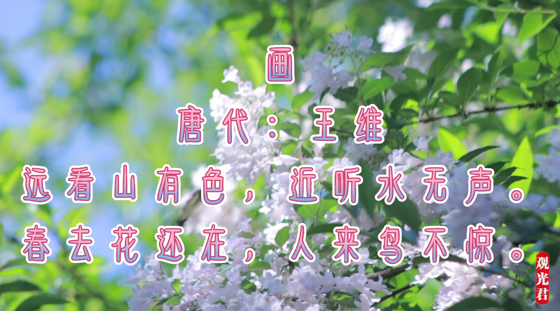 中国是诗词的国度,诗词是阐述心灵的文学艺术,我们吟咏这些诗词,就像在与历史对话。让我们放下纷扰的一切,静静地读一首诗词,开启一段美妙的旅程。观光君今天带大家品读唐代王维《画》,走进青海。此诗描写的是自然景物,赞叹的却是一幅画。前两句写其山色分明,流水无声;后两句描述其花开四季,鸟不怕人。四句诗构成了一幅完整的山水花鸟图。全诗对仗工整,尤其是诗中多组反义词的运用,使其节奏清晰,平仄分明,韵味十足,读着琅琅上口。全诗读起来似乎行行违反自然规律,其实正是暗中设谜,写出了画的特点。关注观光君,更多精彩等待您......