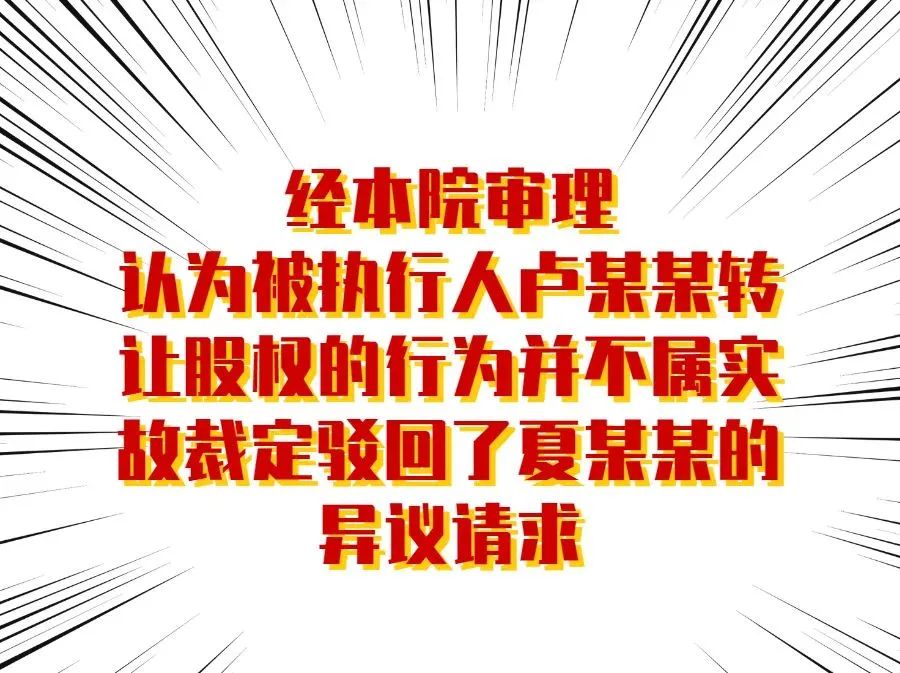 夏某某认为被执行人卢某某在该被拆迁厂房享有的股份已经转让,所以法院不得冻结该笔征收补偿款,并向法院提出执行异议。