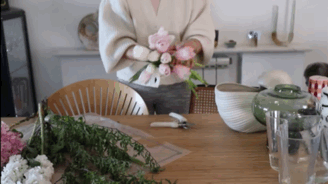 因为它自带流动感,平时在家插花的时候完全不用太拘束,随便来一把当季的郁金香或木绣球,摘掉多余的叶子后,随性地靠在花瓶的任意一个地方,就非常有质感了!