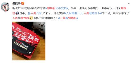 五菱工作人员则表示,目前微博流传的螺蛳粉是3月23号上汽通用五菱的一个援鄂行动,将一定数量的口罩和螺蛳粉用于援鄂慰问。