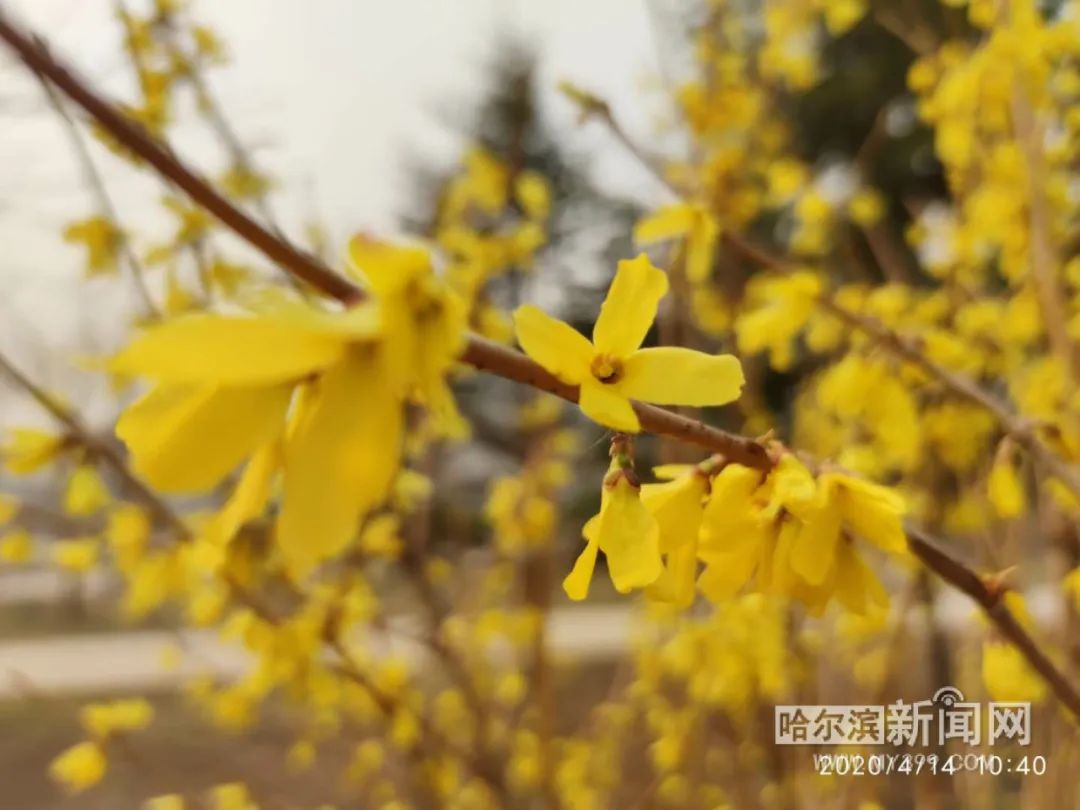 14日,在文昌街人行道一侧绿化带,东北连翘次第绽放,吸引市民驻足观赏。据园林专家介绍,按照目前气温,榆叶梅、山杏、京桃等春花预计在4月下旬开放,冰城将迎来花满街路的美景。不过,这些春花有些外形相似,大家可不要错认哟!