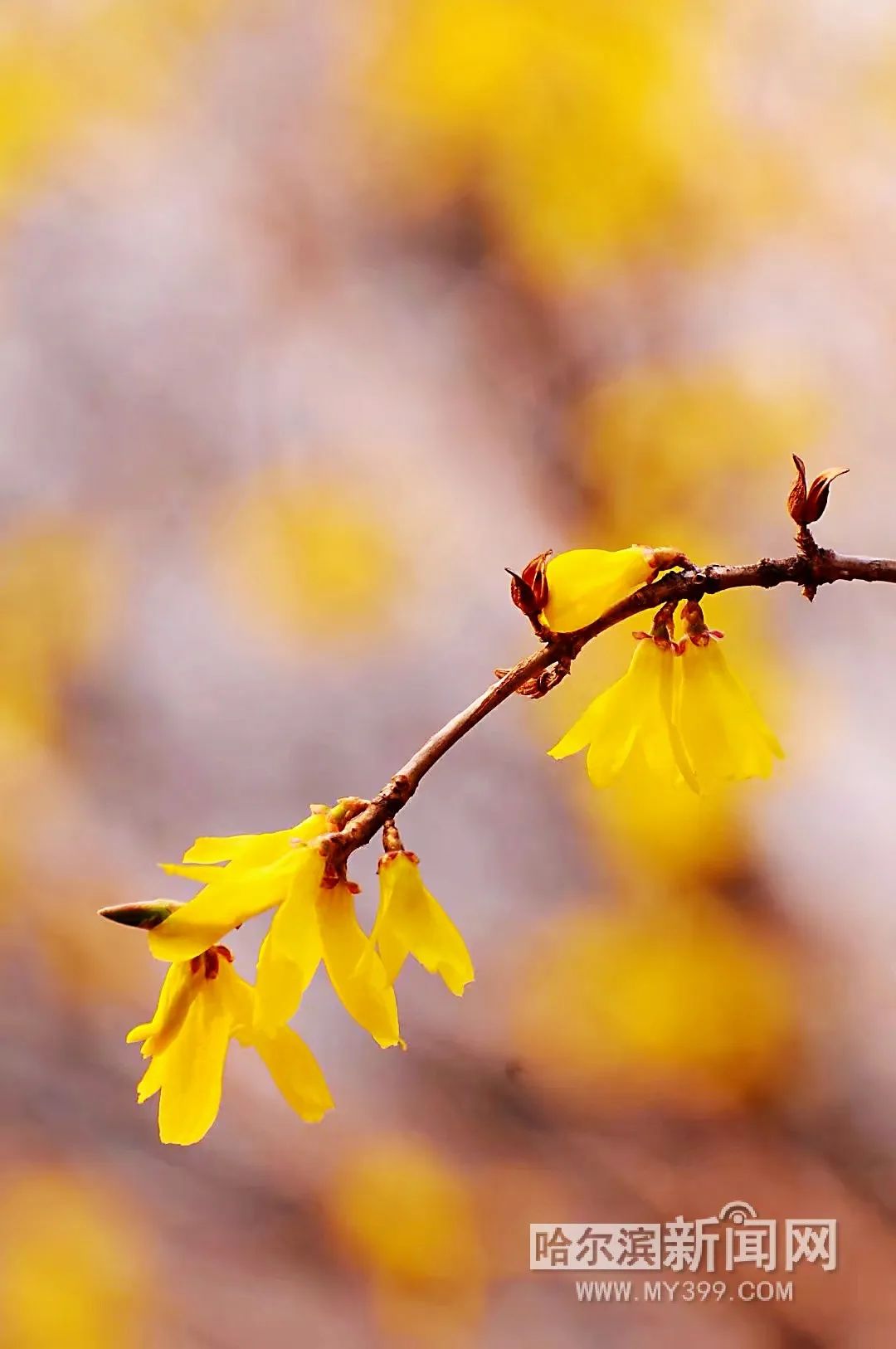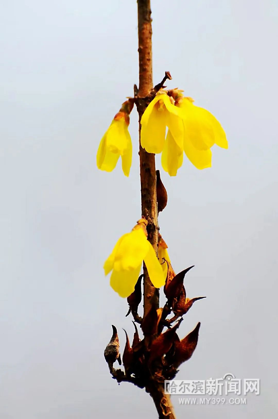 园林专家介绍,东北连翘是哈市开得最早的灌木,但它并不是真正的迎春花。迎春花是素馨属、东北连翘是连翘属,两者都是木犀科灌木,有很多相似之处,例如都是叶对生,花黄色,先开花后长叶等。