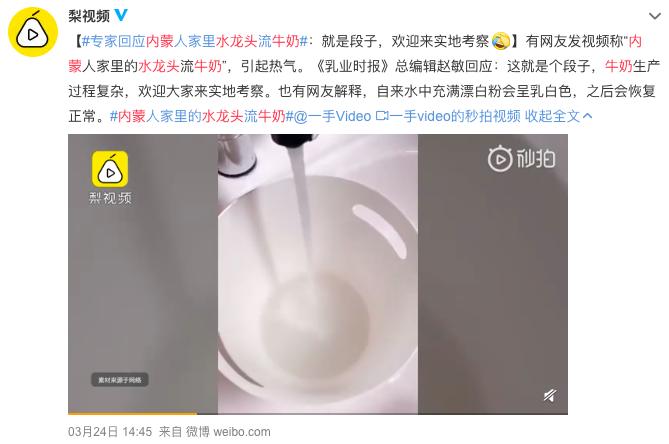 前不久有人发布了一条“水龙头里流牛奶”的短视频,声称在内蒙古,每家每户都已经实现了集中供奶,想补钙的都不用出门,拧开自己的水龙头就行。