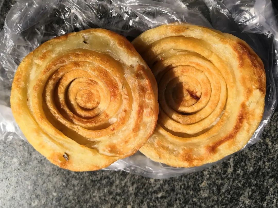 这是一种过油烘烤后形似螺旋的油饼,外表看似平平无奇,内里却暗藏玄机。