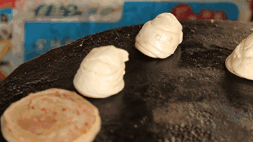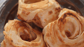 其次,出锅后师傅会在面饼螺纹的中间用手指压出面窝,经历过数次擀皮团面后多达六十层的酥皮一一尽显