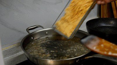 出锅后,净锅接着倒入少许油烧热,下葱姜炝锅。