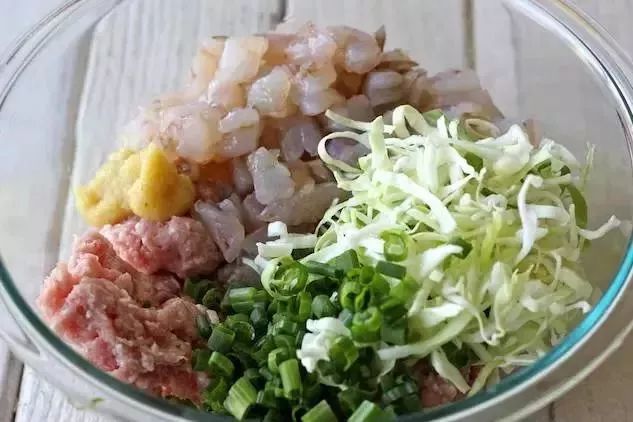 2、将肉馅、虾仁、冬笋粒、葱等混合,再加入调料搅拌均匀即可。