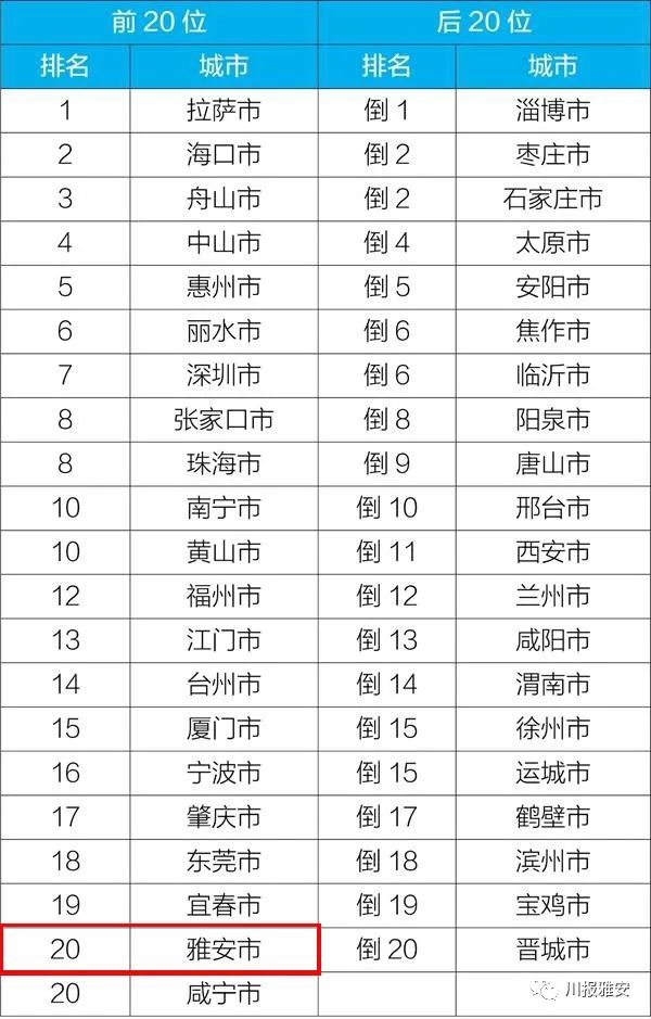 原标题:《给力!全国最新空气质量和城市水质排行榜出炉,雅安双上榜!》