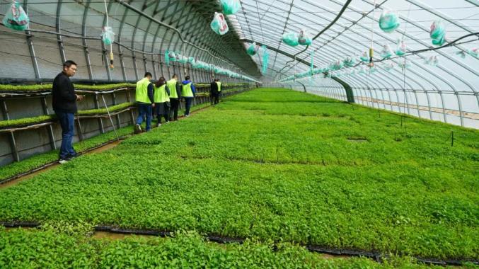 园区位于金川区双湾镇龙口村西侧戈壁滩上,戈壁资源丰富、光热资源优越,发展戈壁农业具有先天的资源、环境和气候优势。园区于2018年开工建设,2019年建成并投产10米*12米的高标准日光温室51座,主要在春季育苗,秋冬季种植鲜食辣椒和西甜瓜等作物,并配套物联网自动控制系统,温室微喷灌系统,实现温室智能化控制、简便化操作。目前,园区内日光温室已全部开展红辣椒育苗,预计可育苗4800万株,可供应9400亩红辣椒移栽种植,产生经济效益768万元。
