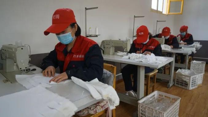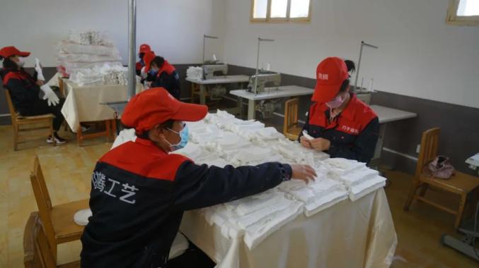 永昌县陇腾工艺品有限公司城关镇扶贫车间成立于2017年,是金昌市丽城职业培训学校出资建设的陇原妹巧手基地、学员实训基地,利用玉米皮、柳条、芨芨草发展巧手产业发展,2019年引入编织袋缝纫加工流水线一条,劳保手套缝纫加工线一条,为万方公司做订单来料加工,就近吸纳就业36人(其中建档立卡贫困户20人)。