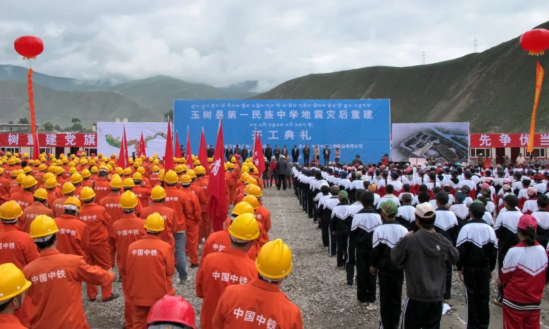 秉持着“开工必先,全程领先”的信念,中铁建工人走遍了结古镇的每一处院落,掌握了第一手材料,为重建工作打下了坚实的基础,三年中紧锣密鼓、从不停歇,创造了第一个完成驻地建设,三个项目同时开工,实现了玉树第二完全小学第一个交付使用,五大商住团率先竣工,玉树第二幼儿园最早开园。