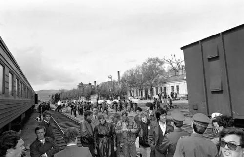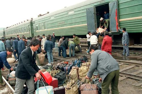 在边境贸易中,中国对苏联的劳务出口数量不断增加。图为1989年7月,绥芬河市火车站等候国际列车的人们。新华社记者 周确 摄
