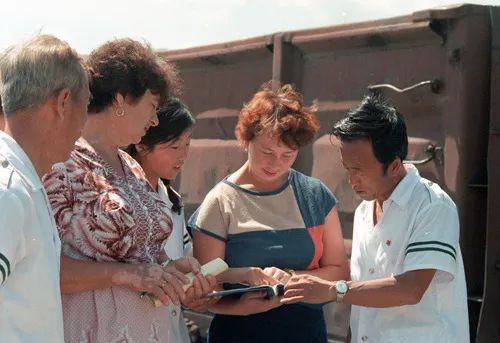 1989年5月中旬,苏联伯力医学院的6名师生和苏联外贸部门的官员结束在黑龙江的学术交流与业务洽谈后,准备从绥芬河市乘火车返回苏联。新华社记者 周确 摄