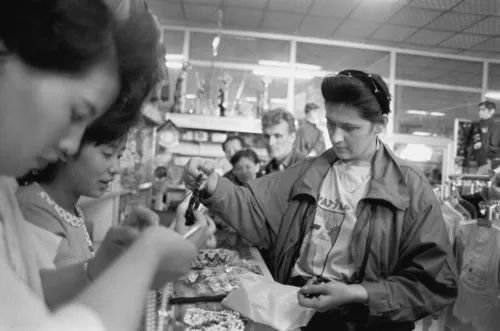“不管在街上还是商店,大人小孩见到老外就说‘欠欠’(交换之意),随时随地就做买卖。”绥芬河商人李佰波回忆当年场景时说。上世纪90年代,俄罗斯轻工产品匮乏,成就了绥芬河的“易货贸易”。当时绥芬河几乎全民“欠欠”,当地人站在街上用旅游鞋、运动服等轻工产品交换俄罗斯人的手表、呢子大衣、望远镜等物品。
