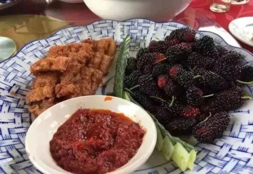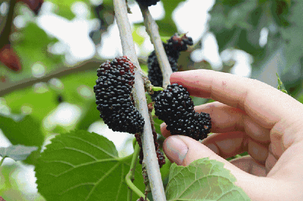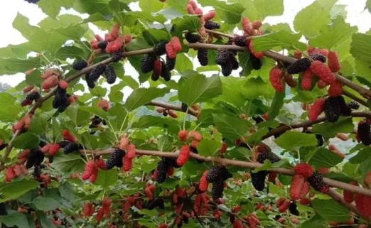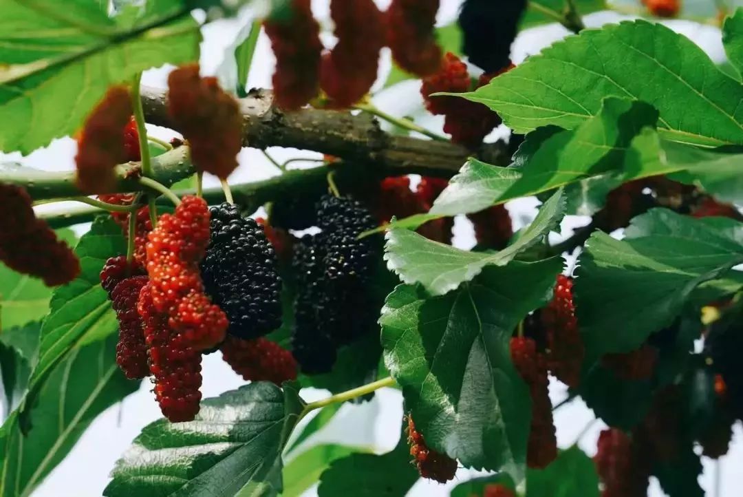 桑葚采摘园主要种植面积超过了4000亩,有4个不同品种的桑葚。桑树成片成片地生长着,每一树的果实都是黑压压地结在枝头。10余家经过培训规范的农家乐,开发了桑葚特色菜以及桑果酒、桑果汁、桑果茶、桑叶茶等系列产品。