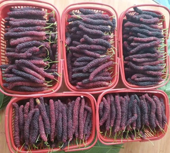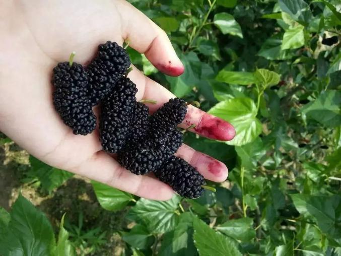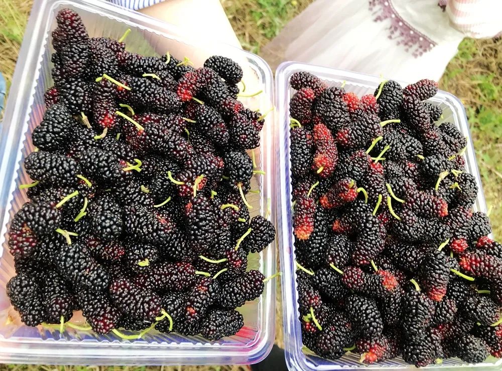这儿的桑葚园也是种的台湾长果桑,长果桑的果实大小是普通桑果的3—4倍,最大单果重可达20克,特!别!甜!