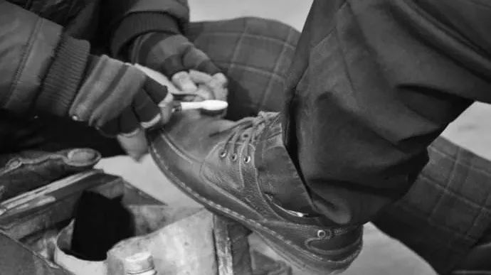 擦皮鞋的过程一般有三步:除尘除垢、擦鞋油、晾干。师傅先用棉布擦掉皮鞋上的污垢,然后会选择与皮鞋颜色相匹配的鞋油。鞋油可以保持皮革的湿度,使皮革变得柔软有弹性,最后擦净皮鞋放在旁边晾干即可。