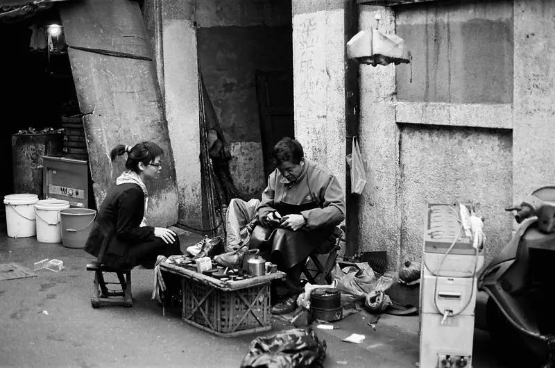 上海人的精致是出了名的。在旧上海,一身西装和锃亮的皮鞋是上流人士的标配。尤其是改革开放以后,人们生活条件提高了,穿皮鞋人的越来越多,做和皮鞋相关行当的人也多了起来,当中就包括擦鞋手艺和修鞋手艺。