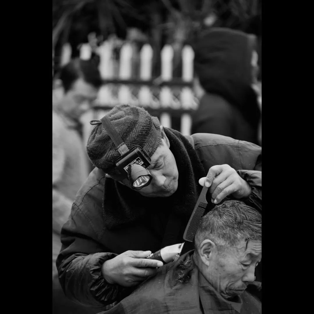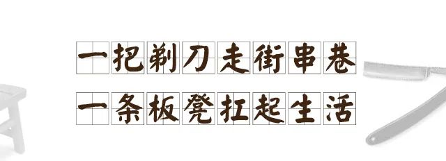 一副剃头挑子,一头挂着板凳和工具箱,几把老式的剃刀和剪刀框框作响;另一头挑着烧炭火的小炉子和脸盆,外加一副白布围单和毛巾,可随时流动的剃头摊就诞生了。