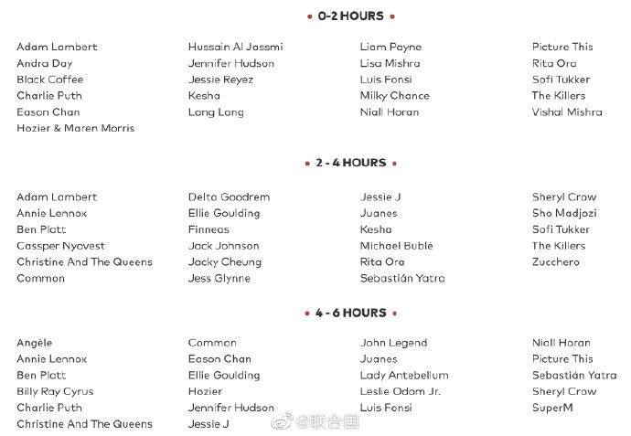 这场名为“One World:A Together at Home”的音乐会分两个部分:6小时轮番上阵直播,以及一场2小时的连续表演。其中,6小时的线上直播在美东时间4月18日下午2点开始(北京时间4月19日凌晨2点至早上8点)。