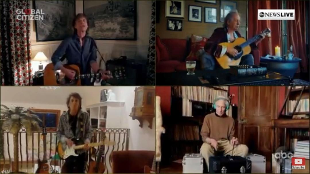 老牌摇滚乐队滚石乐队献唱1969年经典作品《You Can't Always Get What You Want》,唱足5分半钟,看着四张屏幕一个个逐渐亮起实在是令人感动。但右下角的watts爷爷摆三个箱子假装架子鼓,一本正经打空气是怎么回事儿?