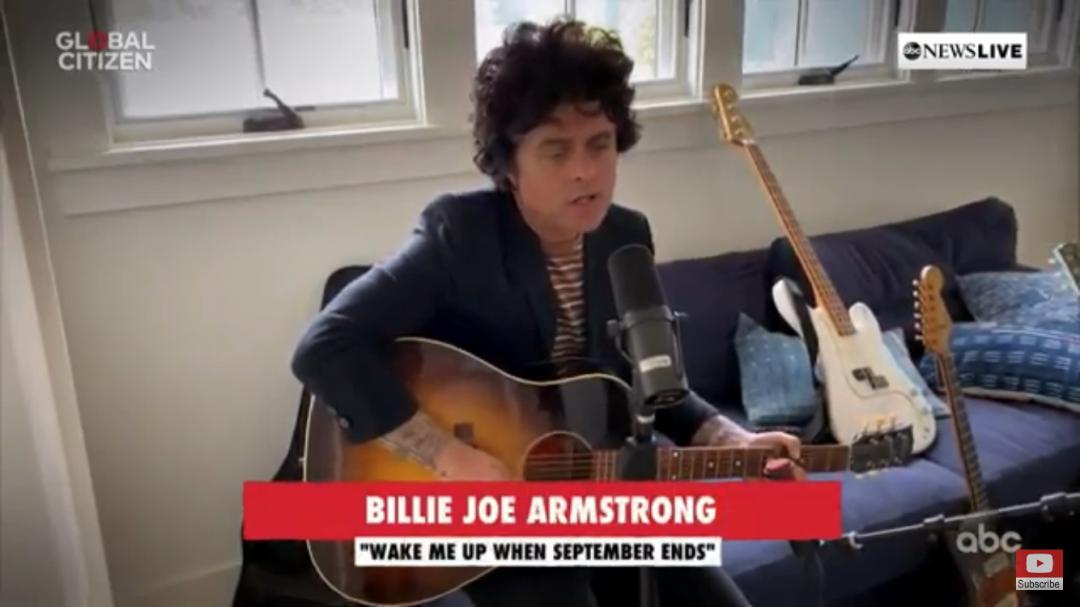 绿日Green Day主唱比利·乔表演了经典作《Wake Me Up When September Ends》。没有烟熏妆的比利·乔头发乱糟糟的,看着倒真像是要一觉睡到国庆节了。