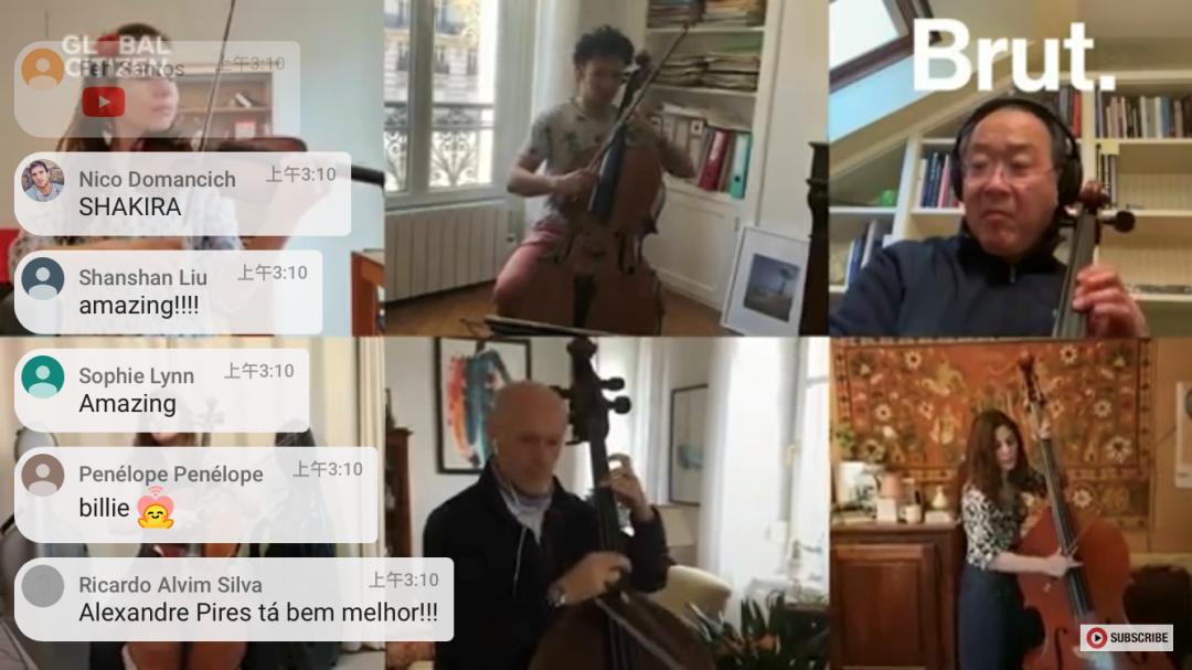预热节目中最精彩的莫过于全世界20多位演奏家一起完成的云交响乐,这其中还有著名华裔大提琴家马友友先生。