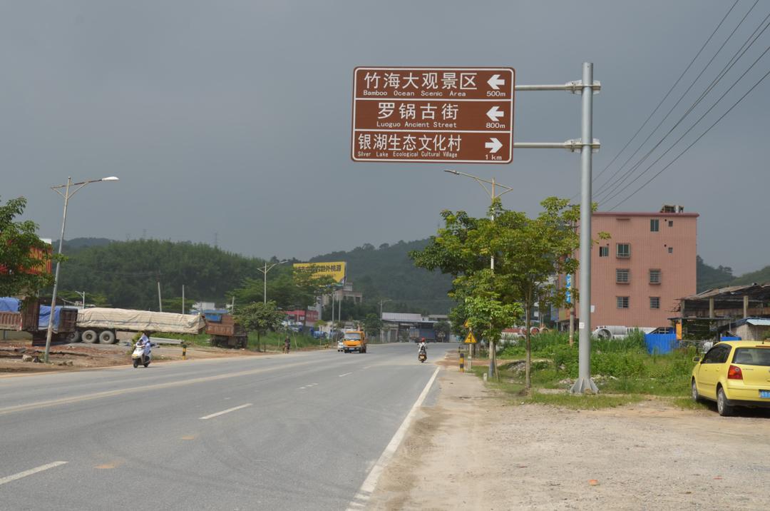 ▲罗锅古街、竹海大观旅游交通标识牌