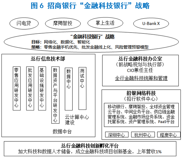 招行金融科技目前主要是对内。成立于2002年的招银网络科技有限公司为招商银行开发“一卡通”、“一网通”、“金葵花理财”、“招商银行信用卡”等产品和系统。招行信息技术部,面向业务条线设立研发中心,技术平台中台化,技术资源配置在业务里,提升业务和科技的凝聚力,并且增强对于产品迭代的响应效率。招行总行金融科技办公室更是全行金融科技协同创新的发动机和决策中心。