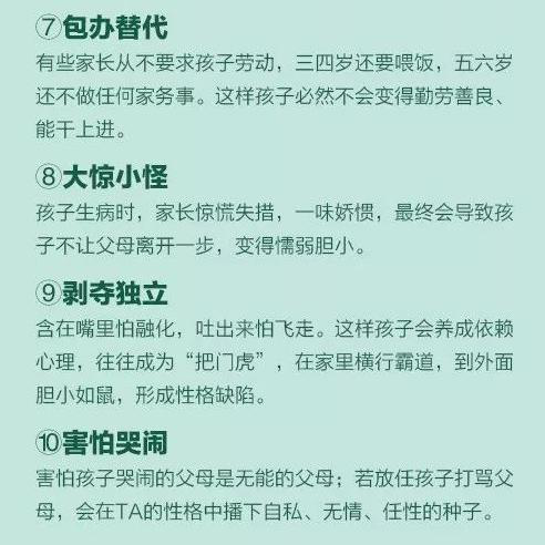 首先我们看一下10种把孩子惯坏的家庭教育方式: