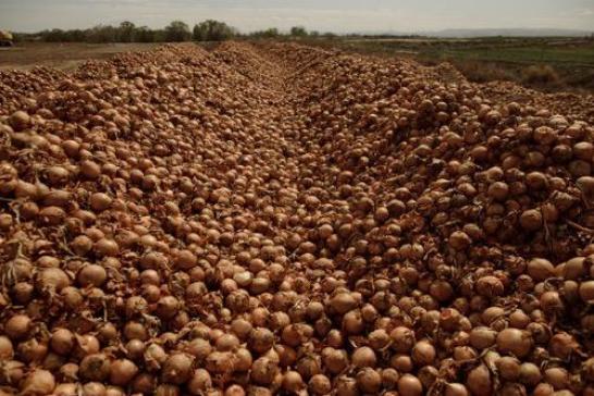 马尔霍尔县拥有农田的第三代洋葱Shay Myers最近一刻也不敢停,他正在挖沟,准备掩埋掉100万磅的洋葱。