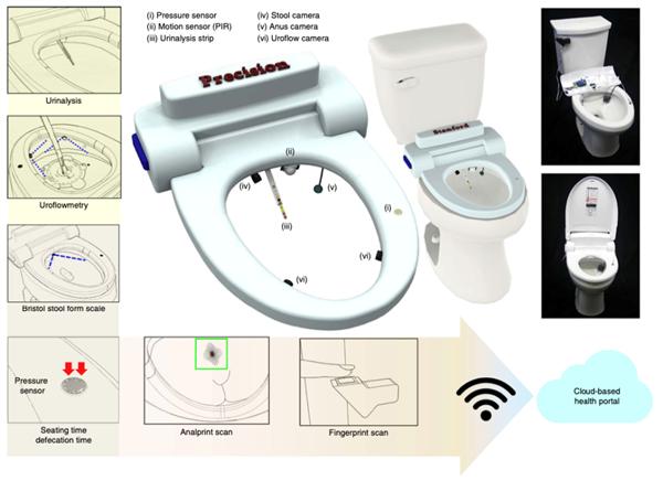 为此,斯坦福大学的研究人员最新开发了一种智能马桶,它会自动收集和分析尿液以及粪便,分析过程可以“和受过训练的医务人员相媲美”。收集到数据被上传到云端数据库中,动态监控用户的健康。