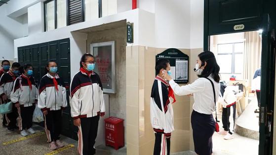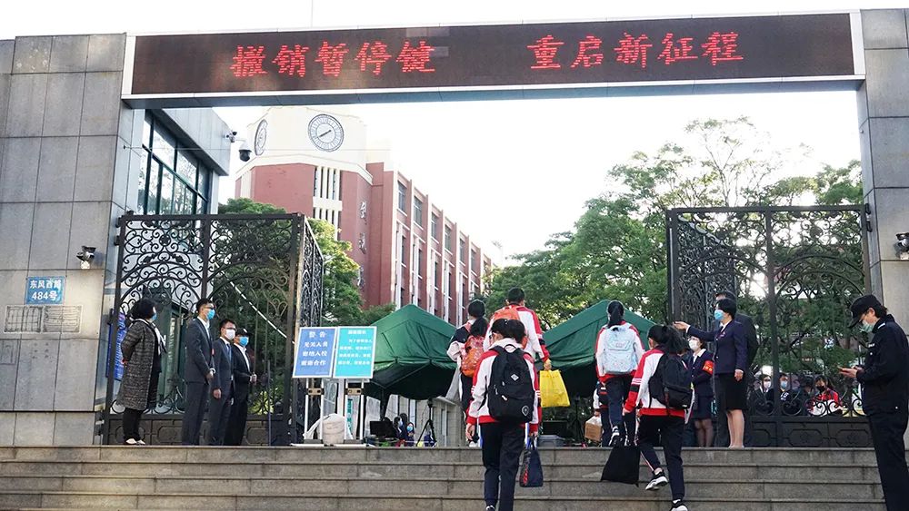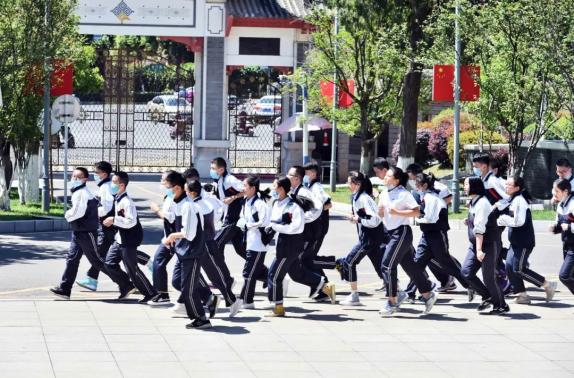 昆明市第五中学同样采取错峰错时入校。7点至7点20分,初三、高三学生进校后;7点20分至7点35分高一、高二学生进校;7点35分至8点,初一、初二学生进校。