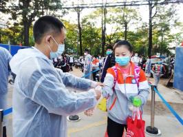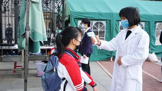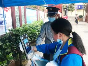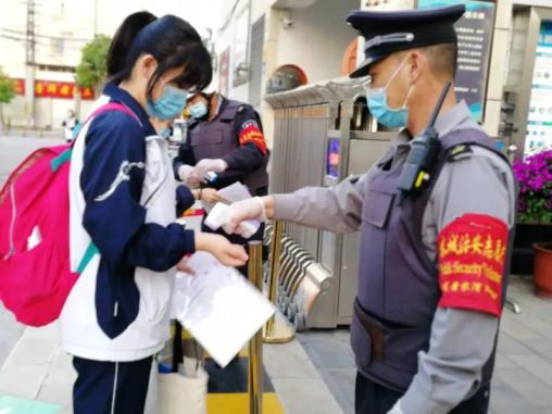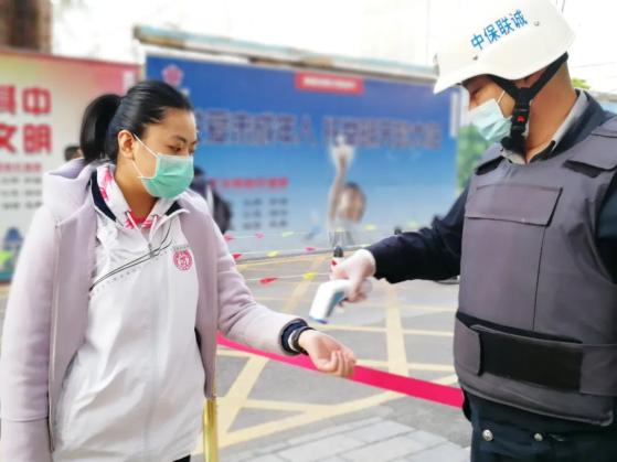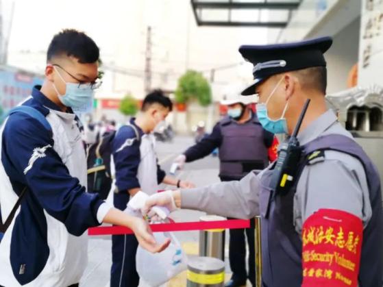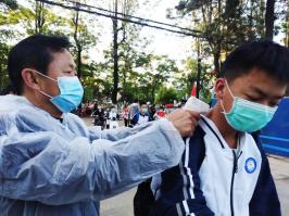 清晨7点,昆十中白塔校区,学校领导、值班老师、保安和志愿者就手拿额温枪,为陆续到来的学生检测体温。