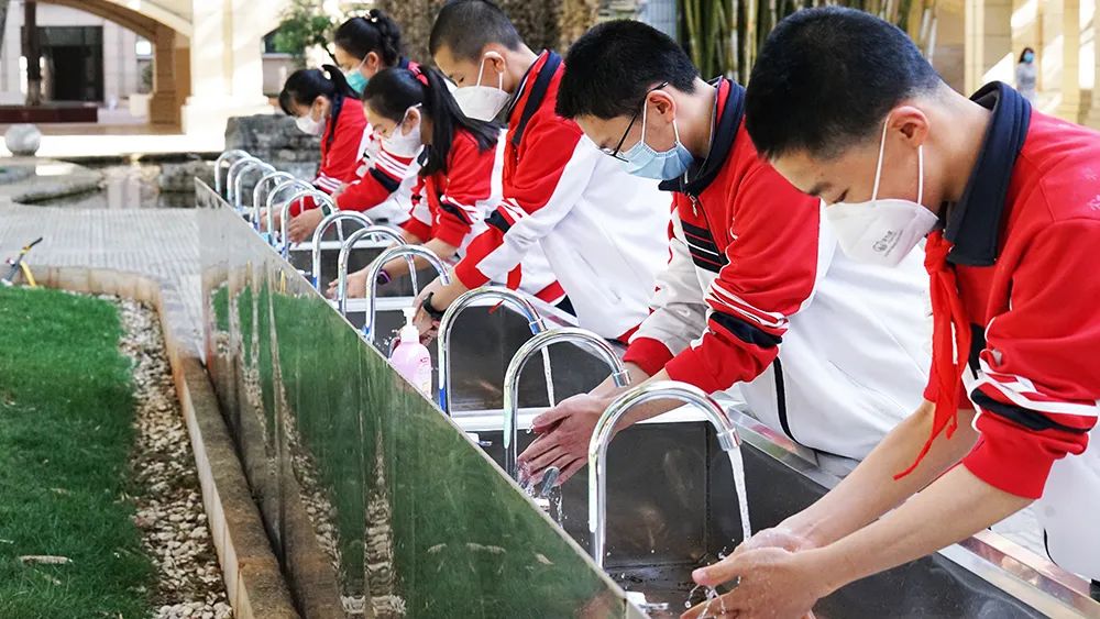 云师大实验中学在开学前已经完成了前期消毒工作,各年级和班级也配备好相应的消毒设备、体温检测设备以及备用口罩,坚持晨测、午测和出、入校园体温检测,做好登记、管理,并将严格按照要求,做好错峰用餐。学校全体教职工按照定点、定岗、定员、定职责的管理模式,通过各种措施确保校园防疫无死角、无漏洞。