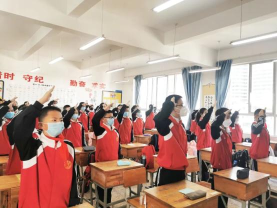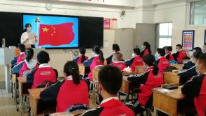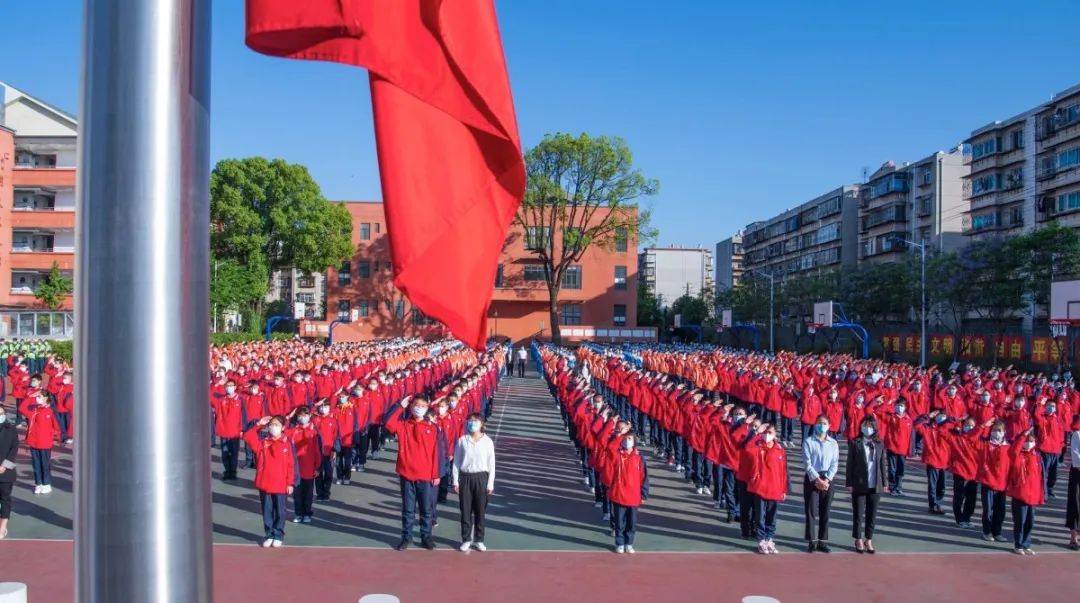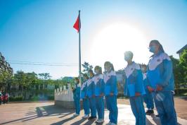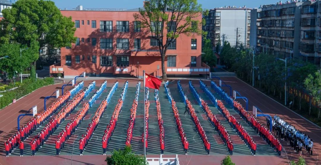 早上8点,官渡区东站实验学校初中部全体师生在操场集中,鲜艳的五星红旗冉冉升起。