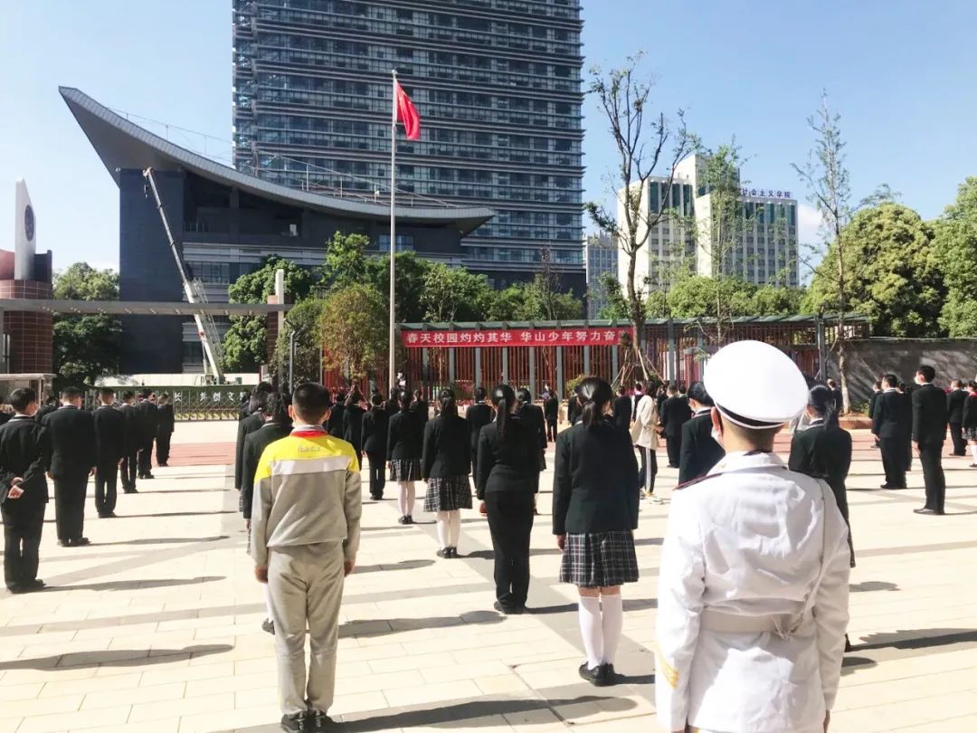 五华区华山中学的升旗仪式上,执行校长张琼希望学生们通过学会感恩、自律和自护,敬畏自然、敬畏规则、敬畏人心。