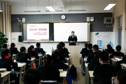 在开学第一课上,华山中学以“繁花与共,未来可期”为主题,带领学生一起回顾上学期走过的日子。迎国庆活动、运动会、研学旅行……一张张照片唤起了学生对校园学习生活的美好回忆。
