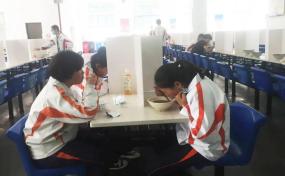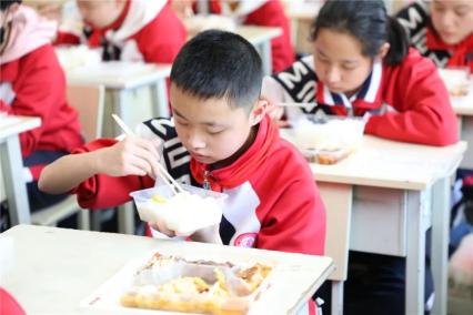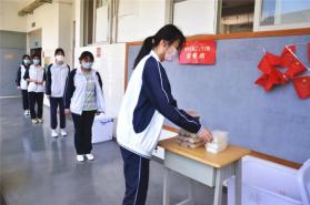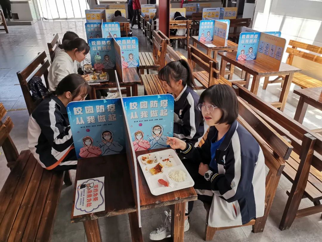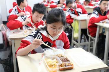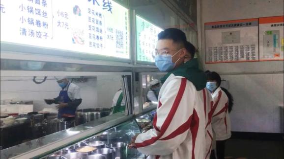 政教处副主任孔超说,学校安排了分时段、分区域,错峰进餐。初一、初三、高三年级错峰到食堂进餐,其他年级的将送餐到教室。