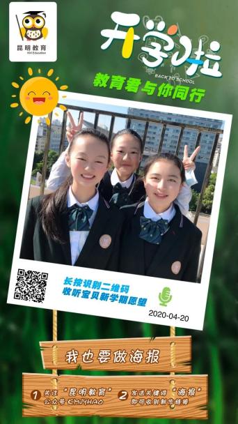 “拍下开学日的照片,说一句开学心愿或者祝福,就有一张特别的专属海报哦~”
