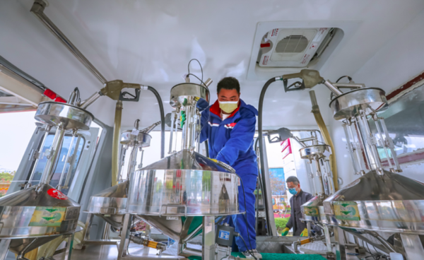 4月1日上午,温州市计量技术研究院“力学实验室”实验室检定员、工程师王瑞通来到了温州市某加油站,还带了一个大家伙——“燃油加油机检定车”。他介绍,这辆“检定车”是专门检定加油机的,里面有5个标准金属量器,容量分为别20L、50L、100L,其中20L、50L为2个。“这些容器主要测量加油量的准确性。”