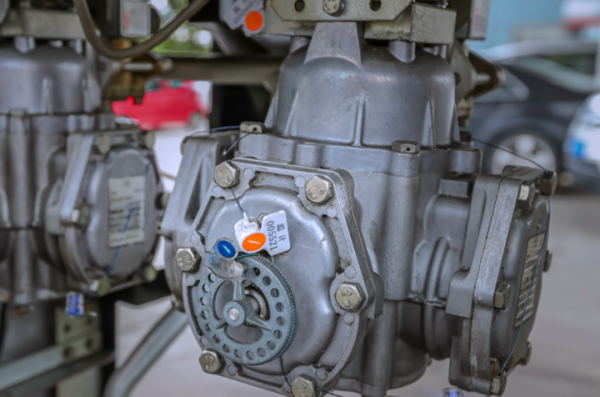 随后,工程师开始检定燃油加油机,他先检查加油机的外观,查看它的金属标志、计量检定合格证是否完好。随后,他卸下金属外壳,对加油机的主板、铅封等依次进行检测。“每一台新的燃油加油机投用时,我们都会给主板、编码器、流量计上铅封,铅封上的编码会被记录计量检定合格书上,它们在都是独一无二的,为的就是防止加油机作弊。”他一边解释,一边拿出一个POS机连接编码器,读取加油信息,查看是否有发生异常。“基本上一个油枪连接一个电脑主板,上面显示的数据有三个:升、金额、单价。”