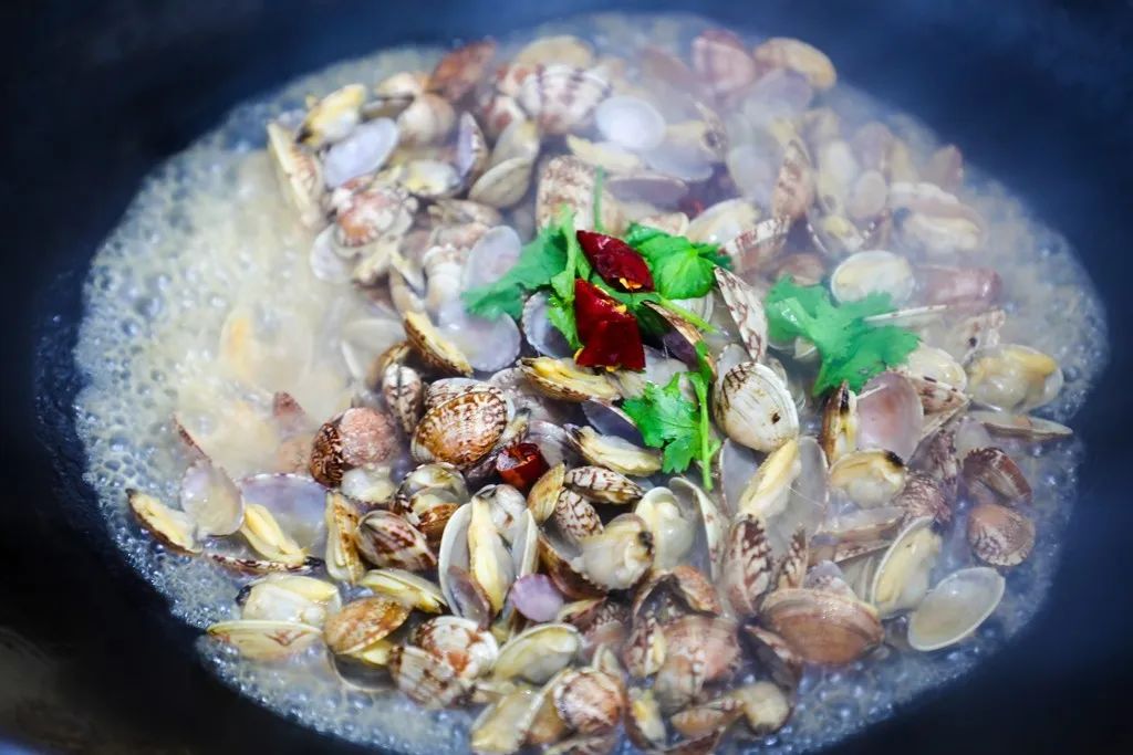 蛤蜊的制作方法,加水煮煮,开口就能吃了。另外还有一种不加水的方法,一点水也不用加,就干锅煮。开锅不多会儿就能听到“啪啪”开口的声音,不要打开锅盖,而且绝对不要翻动蛤蜊,就让它自己在锅里煮,等个三分钟到五分钟,这样做出来的蛤蜊肉才最嫩。